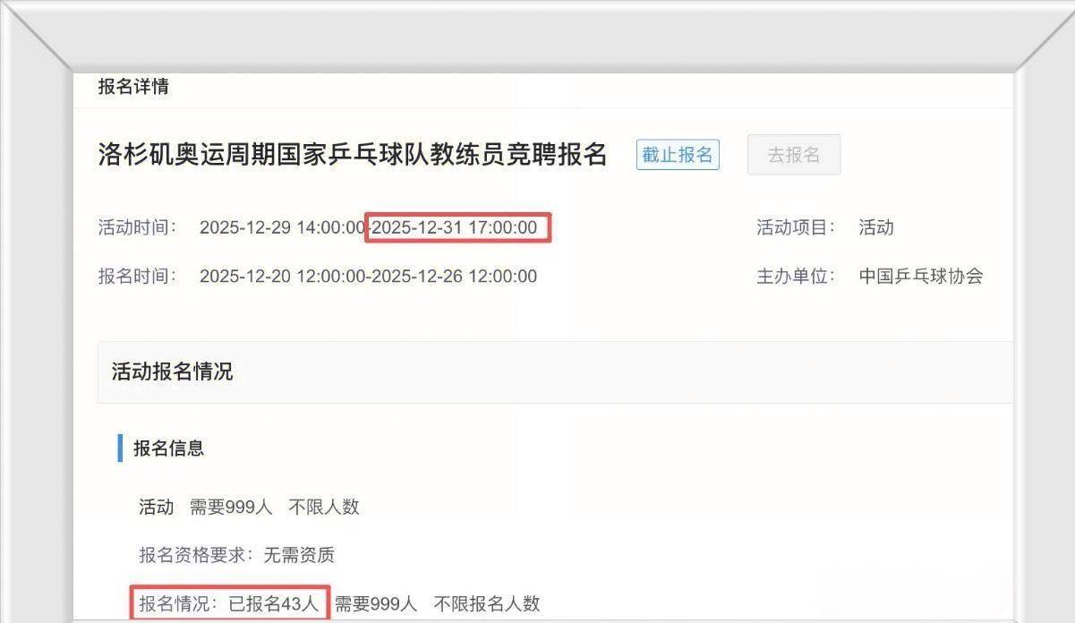 竞聘设置了极高的门槛,总教练候选人需满足年龄不超过60岁、本科以上学历、国家级教练员职称,并且必须曾担任国家男队或女队主教练,带队参加过奥运会、世锦赛等大赛并取得优异成绩。 这些条件将符合资格的人选限定在极小的范围内,最终仅有秦志戬、马琳、王皓、刘国正四人完全符合条件。 而功勋教练肖战因未曾担任过国家队主教练,被排除在总教练候选名单之外。